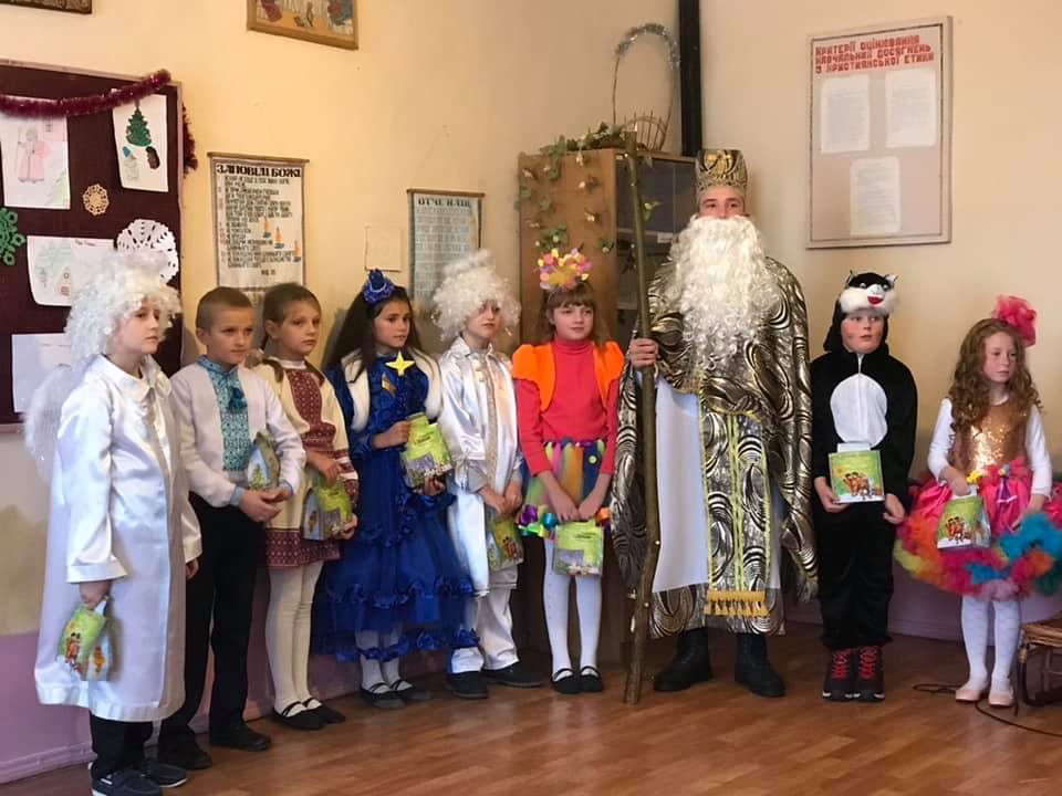 Це свято з нетерпінням чекають дітей. Вони були чемні та слухняні. Ще з вечора вони чекають святого Миколая і надіються отримати подарунки. От  сьогодні у школі відбулося театралізоване свято на честь святого. Зазвучали пісні, вірші у виконанні учнів 3 класу (режисер –  вчитель Ткачишин Б.І.). Були тут і чортики, які намагалися навернути діток на гріх, і добрі ангели. От з’явився з подарунками святий Миколай. Чемні дітки розповідали йому віршики, співали пісні, читали молитви, і як нагорода – подарунок.