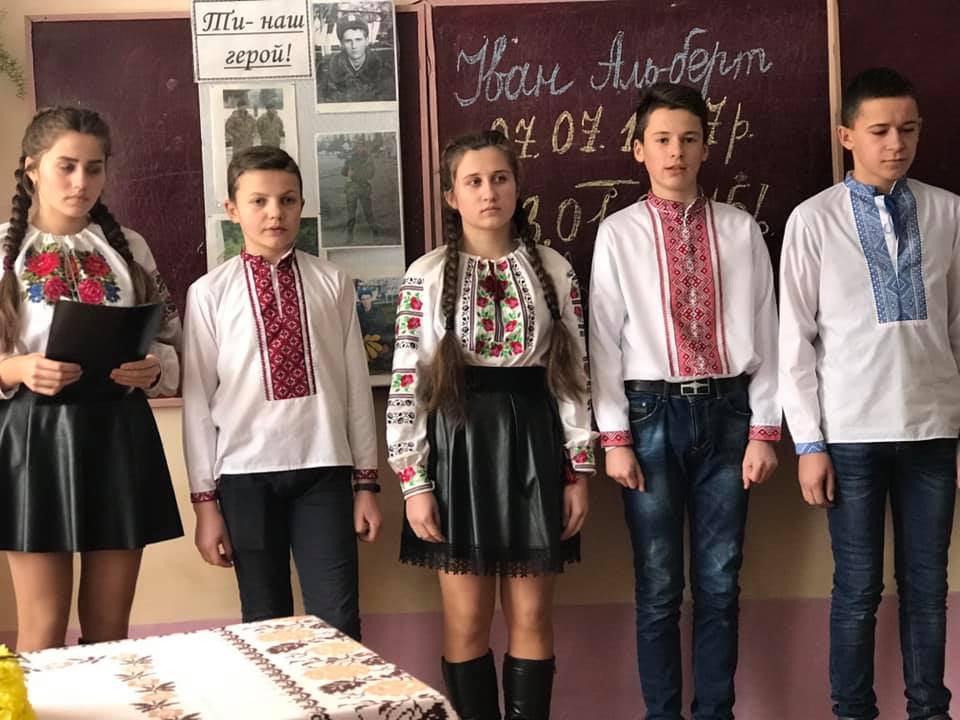 На місцевому цвинтарі діти та вчителі поклали квіти та запалили лампадки на могилах Івана Альберта та Богдана Яценка, помолилися, заспівали Гімн України.