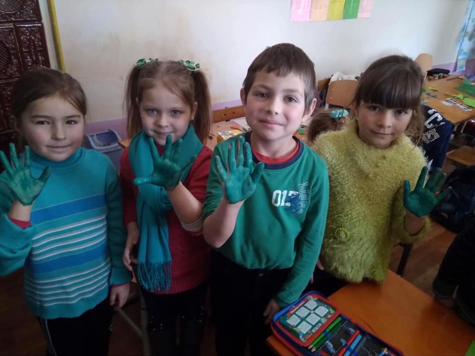 “Земля – наш зелений дім” – тема “Зеленого” четверга. Діти охоче малювали долоньками.