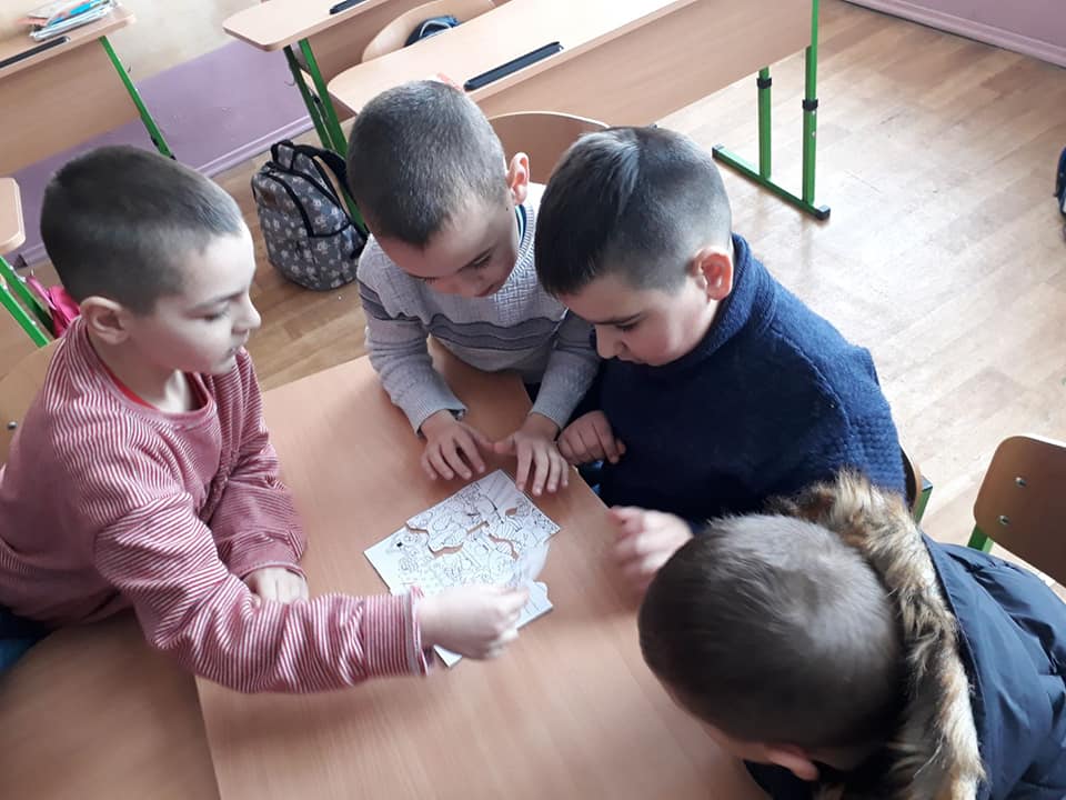2. Учні 2-4 класів взяли участь у вікторині “В гості казка завітала”, під час якої пригадали багато казок та їх головних героїв. Грали в різні конкурси, ігри та складали пазли з ілюстраціями до казок.Перемогу здобула команда “Зірочки”.