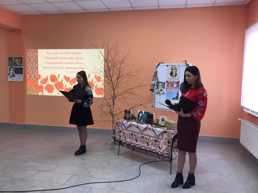 Учні нашого закладу освіти підготували літературно-музичну композицію “Хотіла б я піснею стати” (режисер – вчитель української мови та літератури Маковецький В.В.), приурочену до ювілейної дати. Під час святкового заходу прозвучали вірші, пісні на слова Лесі Українки, були показані сценки за мотивами творів поетеси.