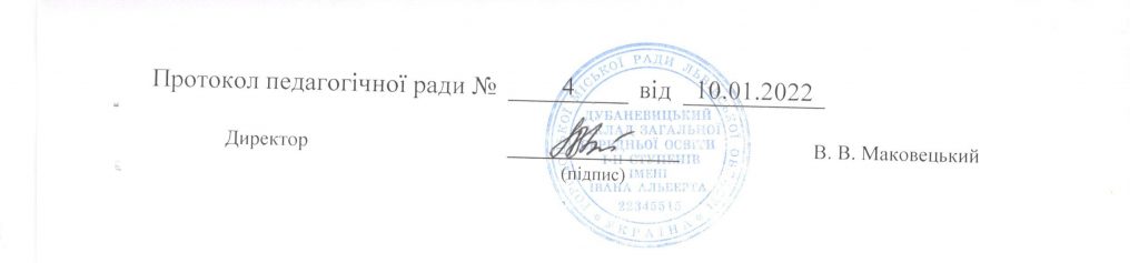 Результати вибору версій оригінал-макетів підручників для 9 класу admin | 12 Січня, 2022 | Документи школи, Офіційна інформація школи | Коментарів немає Related Posts План заходів, спрямованих на протидію булінгу у 2024-2025 н.р. Коментарів немає | Вер 10, 2024 Статут Дубаневицької ЗОШ І-ІІ ступенів імені Івана Альберта Коментарів немає | Січ 2, 2018 Стоп, булінг! Коментарів немає | Сер 31, 2019 Вибір підручників для 1 класу Коментарів немає | Тра 21, 2018 About The Author admin Add a Comment Скасувати коментарВаша e-mail адреса не оприлюднюватиметься. Обов’язкові поля позначені *Comment:*Name:* Email Address:* Website: Δ